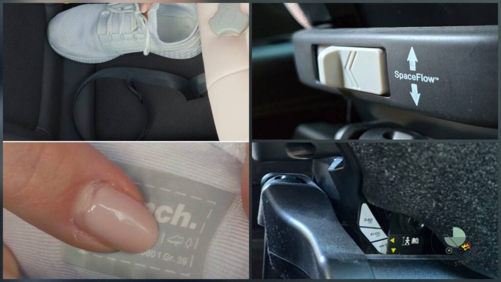 Takoj zatem sem opazila še nekaj – koliko drsno podnožje dejansko olajša nameščanje otroka v sedež. Čeprav ni vrtljiv sedež, je možnost, da ga najprej pomaknemo nazaj, staršem daje več manevrskega prostora za namestitev mlajšega otroka, zategovanje pasov in preverjanje položaja. Če otrok v tistem trenutku še ne potrebuje največ prostora za noge, si ta prostor lahko začasno “izposodimo” za lažje nameščanje, nato pa sedež preprosto potisnemo nazaj proti klopi.